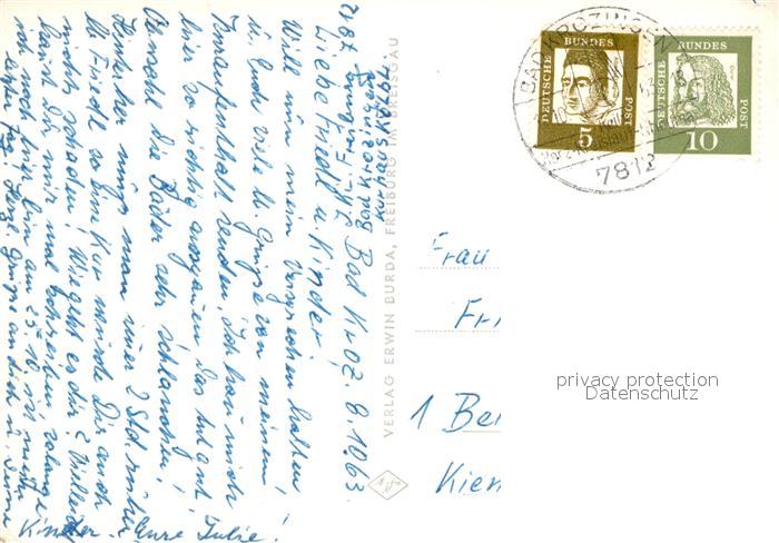 72958542 alte Postkarte Bad Krozingen Kurverwaltung Schloss Kurhaus Baederviertel postalisch gelaufen Erhaltung siehe scans [PaolaD17] KatCode: 11110008315006