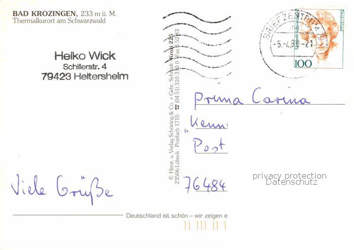 72757959 alte Postkarte Bad Krozingen Rathaus Kurhaus Parkanlagen postalisch gelaufen Erhaltung siehe scans [NatalD47] KatCode: 11110008315006