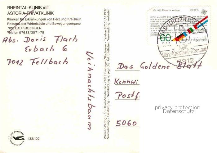 72725897 alte Postkarte Bad Krozingen Rheintal Klinik mit Astoria Privatklinik postalisch gelaufen Erhaltung siehe scans [WerneD78] KatCode: 11110008315006