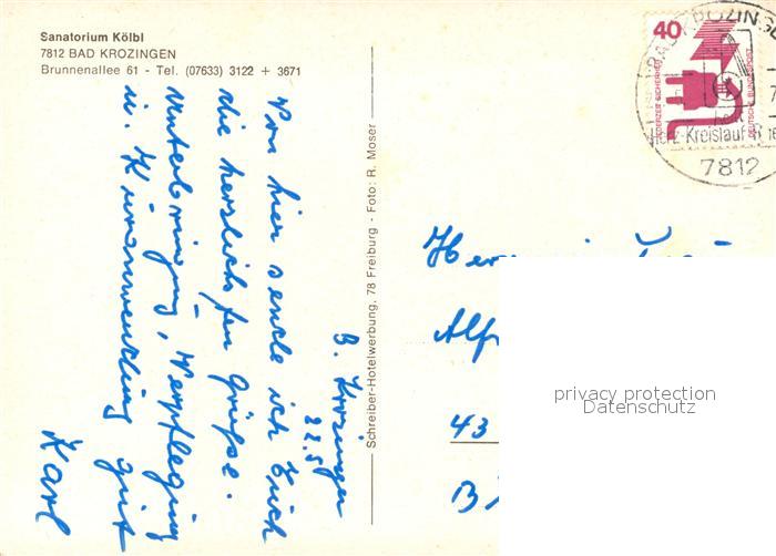 73310796 alte Postkarte Bad Krozingen Sanatorium Koelbl postalisch gelaufen Erhaltung siehe scans [FriedD77] KatCode: 11110008315006