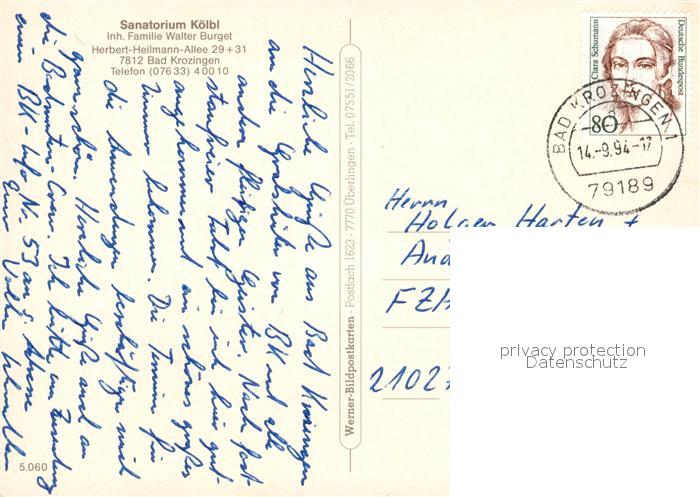 73092885 alte Postkarte Bad Krozingen Sanatorium Koelbl postalisch gelaufen Erhaltung siehe scans [NatalD47] KatCode: 11110008315006