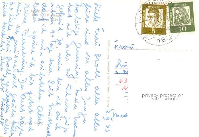 73155883 alte Postkarte Bad Krozingen Sanatorium Plume Kurort Schwarzwald postalisch gelaufen Erhaltung siehe scans [FriedD77] KatCode: 11110008315006