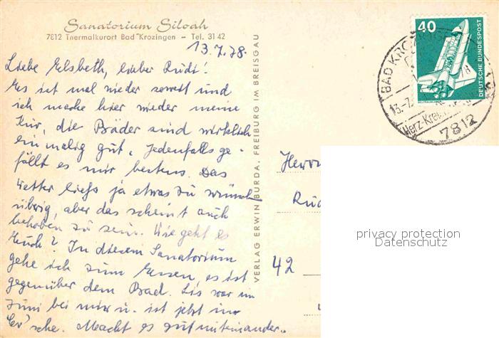 72727152 alte Postkarte Bad Krozingen Sanatorium Siloah postalisch gelaufen Erhaltung siehe scans [FriedD77] KatCode: 11110008315006