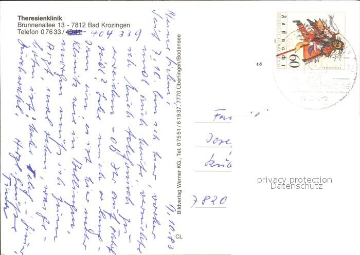 72329132 alte Postkarte Bad Krozingen Theresienklinik postalisch gelaufen Erhaltung siehe scans KatCode: 11110008315006