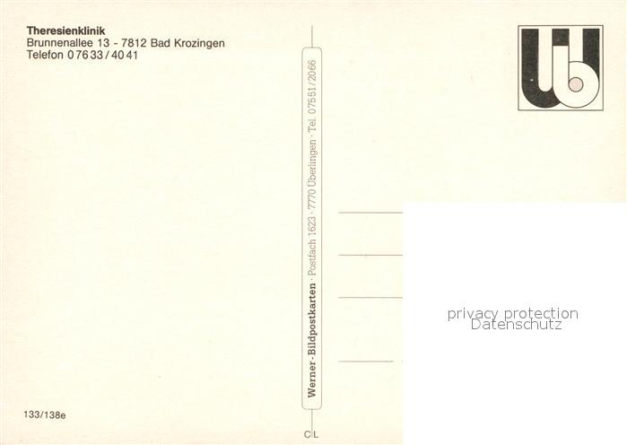 73020417 Bad Krozingen Theresienklinik postalisch nicht gelaufen Erhaltung siehe scans [PaolaD17] KatCode: 11110008315006