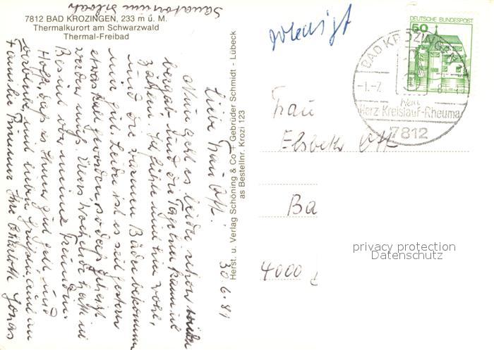 72974014 alte Postkarte Bad Krozingen Thermal-Freibad postalisch gelaufen Erhaltung siehe scans [PaolaD17] KatCode: 11110008315006