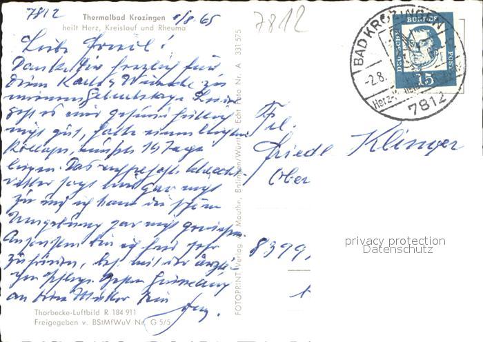 41636089 alte Postkarte Bad Krozingen Thermalbad Fliegeraufnahme postalisch gelaufen Erhaltung siehe scans KatCode: 11110008315006