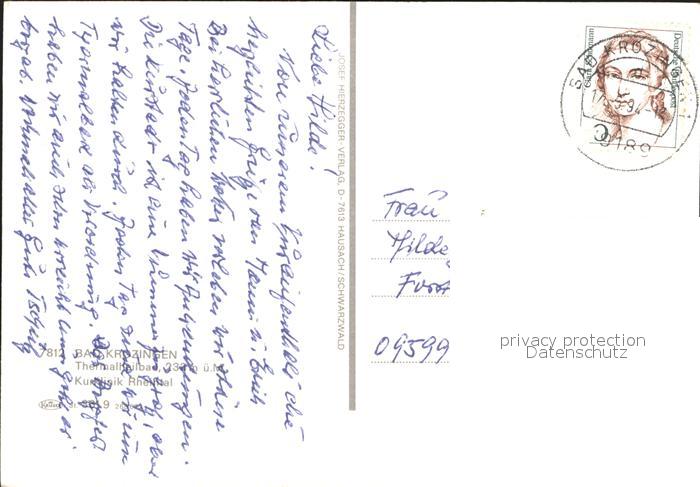 72312576 alte Postkarte Bad Krozingen Thermalbad Kurklinik Rheintal postalisch gelaufen Erhaltung siehe scans KatCode: 11110008315006