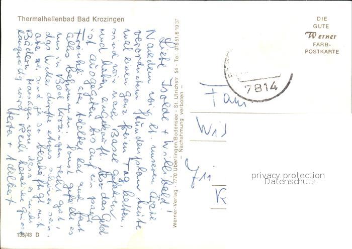 72583143 alte Postkarte Bad Krozingen Thermalhallenbad Kurort postalisch gelaufen Erhaltung siehe scans [FriedD77] KatCode: 11110008315006