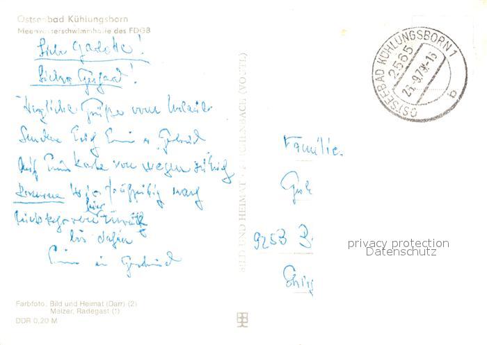 73095860 alte Postkarte Bad Kuehlungsborn Meerwasserschwimmhalle postalisch gelaufen Erhaltung siehe scans [NatalD47] KatCode: 11110013051042