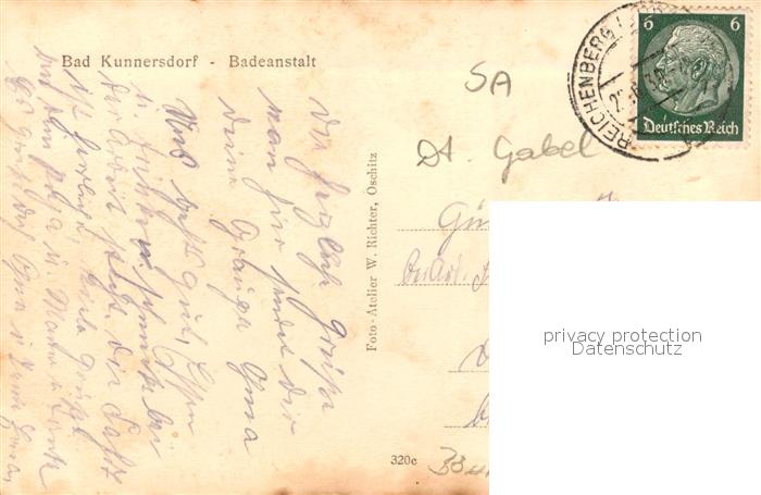 43253656 Bad Kunnersdorf Badeanstalt postalisch gelaufen Erhaltung siehe scans [FriedD77] old postcard Frie Katcode 11520