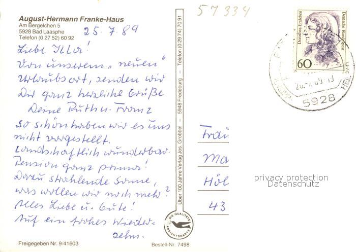 73211032 alte Postkarte Bad Laasphe August Hermann Franke Haus Fliegeraufnahme postalisch gelaufen Erhaltung siehe scans [WerneD78] KatCode: 11110005970028