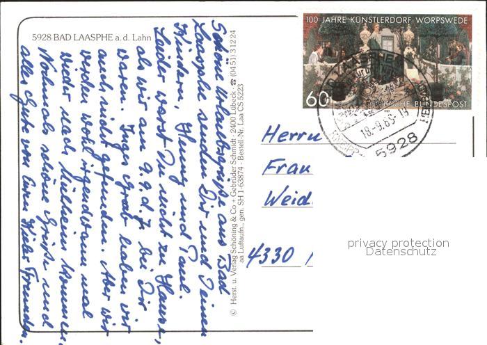 71831891 alte Postkarte Bad Laasphe Fliegeraufnahme postalisch gelaufen Erhaltung siehe scans KatCode: 11110005970028