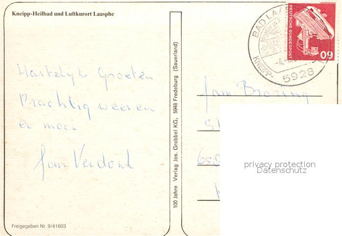 72930968 alte Postkarte Bad Laasphe Fliegeraufnahme postalisch gelaufen Erhaltung siehe scans [WerneD78] KatCode: 11110005970028