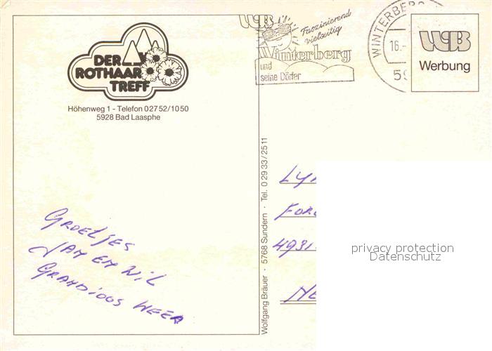 72855829 alte Postkarte Bad Laasphe Hotel Der Rothaar Treff Bar Hallenbad postalisch gelaufen Erhaltung siehe scans [FriedD77] KatCode: 11110005970028