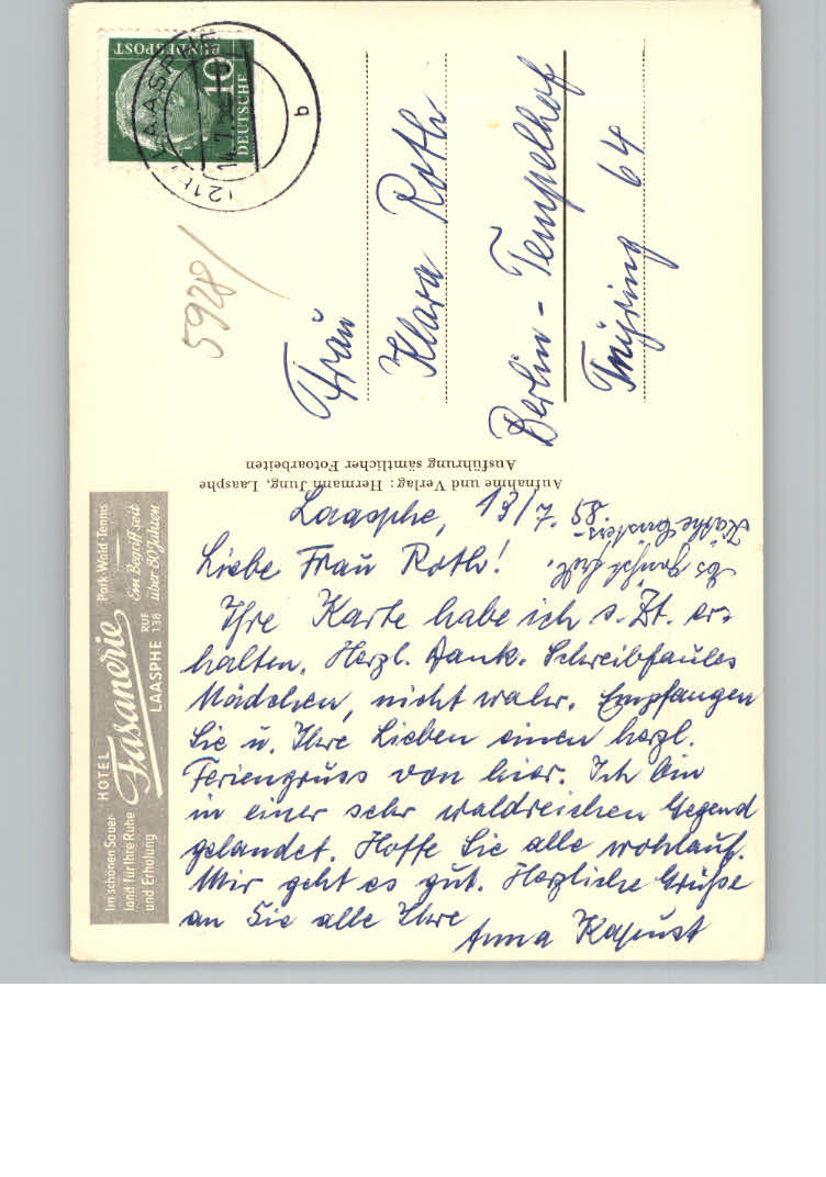 31141543 Bad Laasphe Hotel Fasanerie postalisch nicht gelaufen KatCode:
