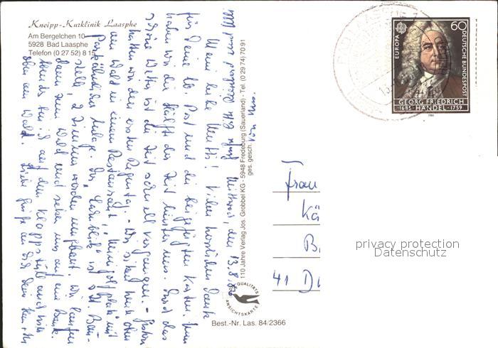 71928513 alte Postkarte Bad Laasphe Kneipp-Kurklinik Laasphe postalisch gelaufen Erhaltung siehe scans KatCode: 11110005970028