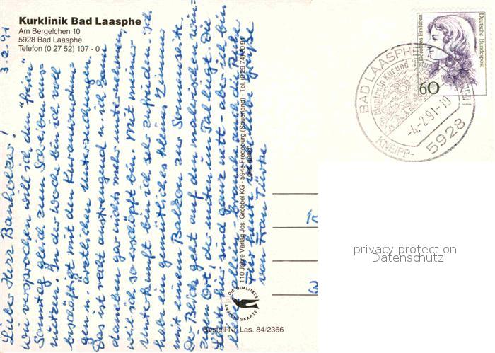 72908123 alte Postkarte Bad Laasphe Kurklinik postalisch gelaufen Erhaltung siehe scans [NatalD47] KatCode: 11110005970028