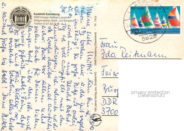 73093599 alte Postkarte Bad Laasphe Kurklinik Emmaburg postalisch gelaufen Erhaltung siehe scans [NatalD47] KatCode: 11110005970028