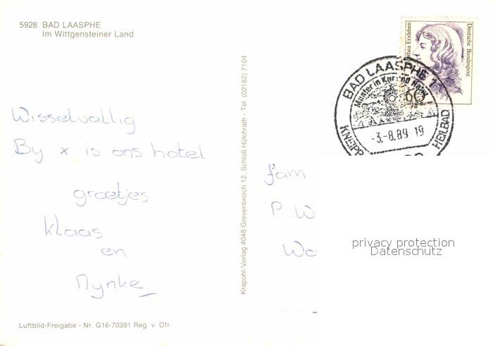 72863746 alte Postkarte Bad Laasphe Kurort im Wittgensteiner Land postalisch gelaufen Erhaltung siehe scans [FriedD77] KatCode: 11110005970028
