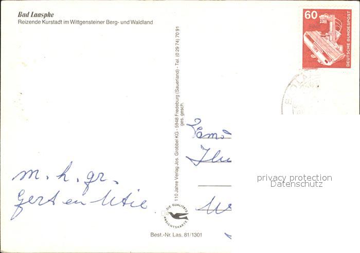 72494764 alte Postkarte Bad Laasphe Kurstadt postalisch gelaufen Erhaltung siehe scans KatCode: 11110005970028
