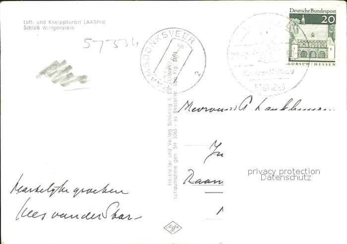 72403471 alte Postkarte Bad Laasphe Schloss Wittgenstein Kneippkurort Fliegeraufnahme postalisch gelaufen Erhaltung siehe scans KatCode: 11110005970028