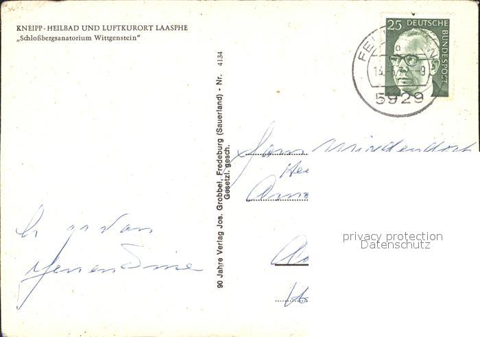 72306671 alte Postkarte Bad Laasphe Schlossberg Sanatorium Wittgenstein postalisch gelaufen Erhaltung siehe scans KatCode: 11110005970028