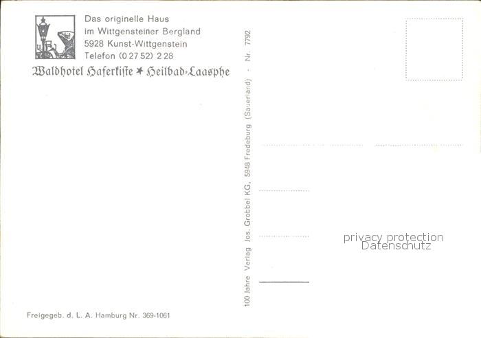 72465037 Bad Laasphe Waldhotel Haferkiste postalisch nicht gelaufen Erhaltung siehe scans KatCode: 11110005970028