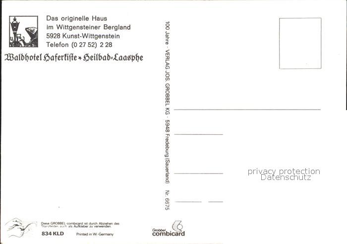 72465036 Bad Laasphe Waldhotel Haferkiste postalisch nicht gelaufen Erhaltung siehe scans KatCode: 11110005970028
