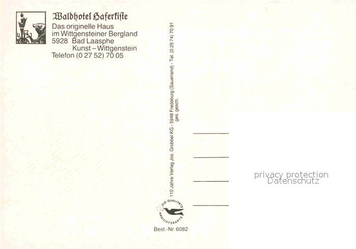72673083 Bad Laasphe Waldhotel Hafertifte postalisch nicht gelaufen Erhaltung siehe scans [AndreD76] Andr Katcode 11110005970028
