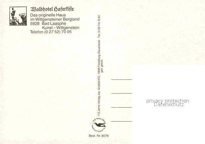 72673082 Bad Laasphe Waldhotel Hafertifte postalisch nicht gelaufen Erhaltung siehe scans [AndreD76] KatCode: 11110005970028