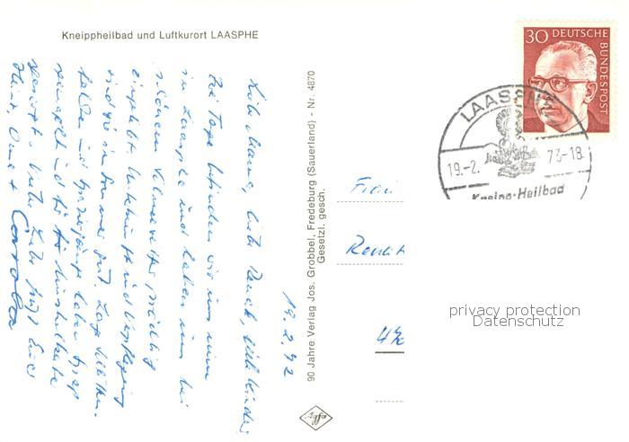 73780128 alte Postkarte Bad Laasphe Winterpanorama Kneippheilbad Luftkurort postalisch gelaufen Erhaltung siehe scans [FriedD77] KatCode: 11110005970028
