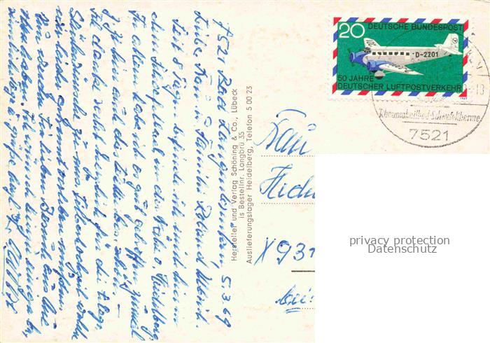 74043632 alte Postkarte Bad Langenbruecken Bad Schoenborn Kurhaus Rathaus Kraichgauhalle Kirche Kurpark Schwefelbad Brunnen postalisch gelaufen Erhaltung siehe scans [FriedD77] KatCode: 11110008215100