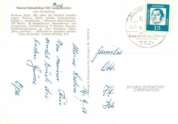 72672976 alte Postkarte Bad Langenbruecken Bad Schoenborn Thermal Schwefelbad postalisch gelaufen Erhaltung siehe scans [AndreD76] KatCode: 11110008215100