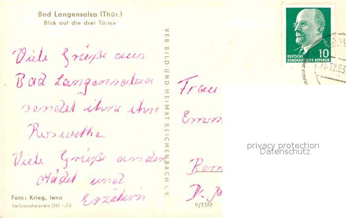 72640543 alte Postkarte Bad Langensalza Drei Tuerme postalisch gelaufen Erhaltung siehe scans [NatalD47] KatCode: 11110016064003