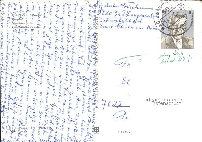 72355901 alte Postkarte Bad Langensalza HO Hotel Schwan Kurpark Storchennest Otto Winter Str postalisch gelaufen Erhaltung siehe scans KatCode: 11110016064003