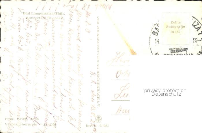 71925058 alte Postkarte Bad Langensalza Konzert Kurpark postalisch gelaufen Erhaltung siehe scans KatCode: 11110016064003