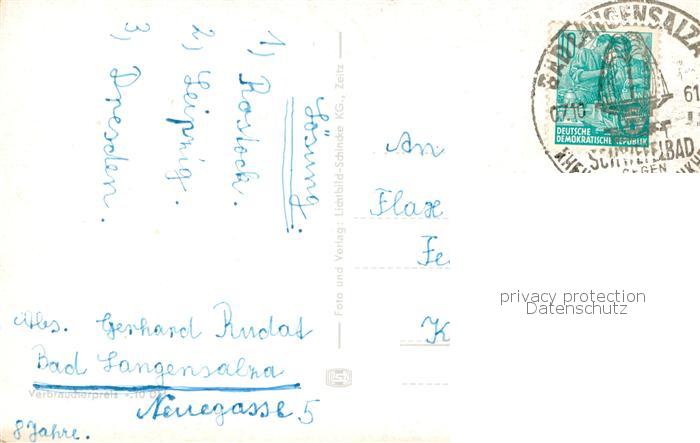 73753041 alte Postkarte Bad Langensalza Marktkirche Rathaus Schwefelbad Klubhaus postalisch gelaufen Erhaltung siehe scans [FriedD77] KatCode: 11110016064003