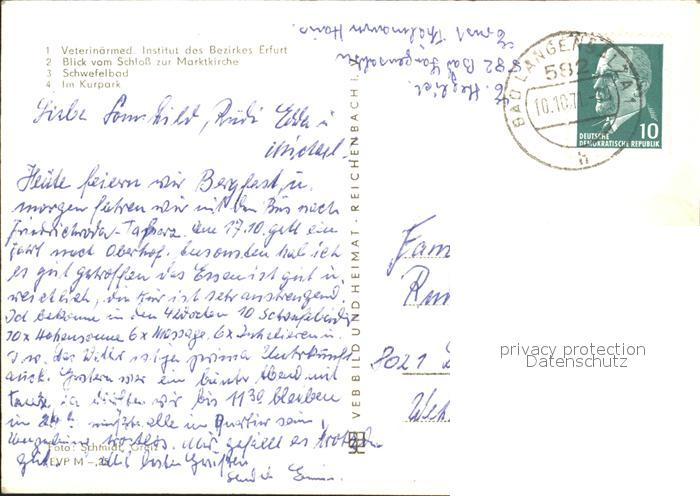 72357235 alte Postkarte Bad Langensalza Schloss Marktkirche Schwefelbad Kurpark postalisch gelaufen Erhaltung siehe scans KatCode: 11110016064003