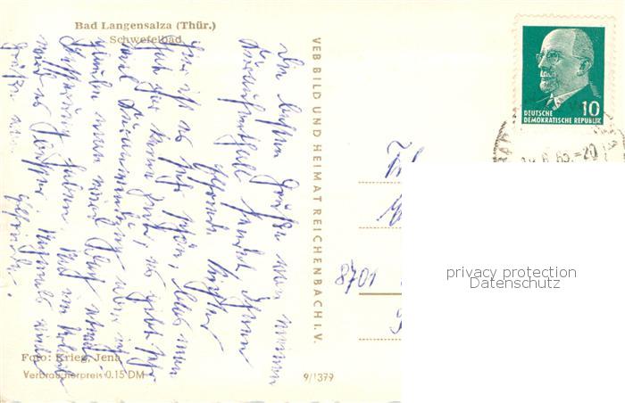 73750580 alte Postkarte Bad Langensalza Schwefelbad postalisch gelaufen Erhaltung siehe scans [WerneD78] KatCode: 11110016064003
