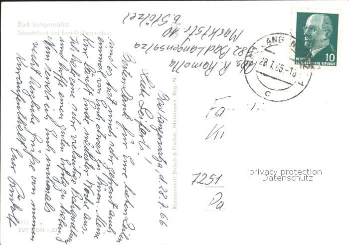 72118603 alte Postkarte Bad Langensalza Schwefelbad Ernst Thaelmann-Heim postalisch gelaufen Erhaltung siehe scans KatCode: 11110016064003