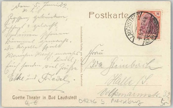 70131174 alte Postkarte Bad Lauchstaedt ad Lauchstedt Goethe Theater postalisch gelaufen KatCode: 11110015088025