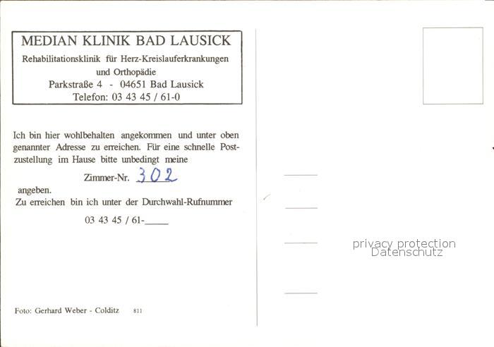 72393234 Bad Lausick Median Klinik postalisch nicht gelaufen Erhaltung siehe scans KatCode: 11110014383020