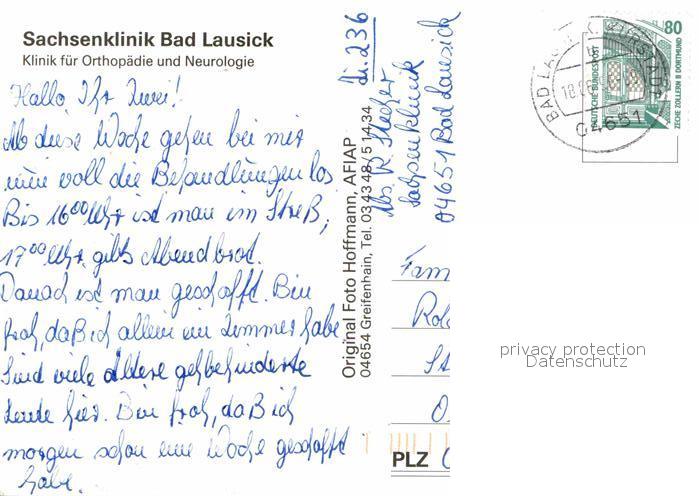 72652040 alte Postkarte Bad Lausick Sachsenklinik postalisch gelaufen Erhaltung siehe scans [FriedD77] KatCode: 11110014383020