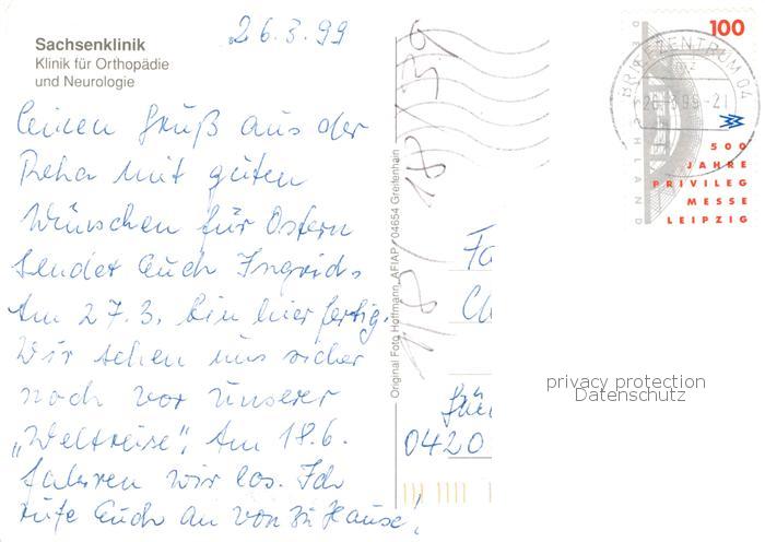 73841664 alte Postkarte Bad Lausick Sachsenklinik Kurhaus Kurhotel Hallenbad Treppe postalisch gelaufen Erhaltung siehe scans [WerneD78] KatCode: 11110014383020