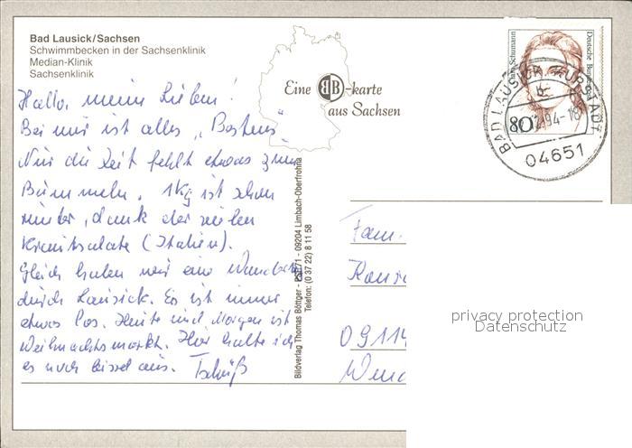 72382010 alte Postkarte Bad Lausick Sachsenklinik Schwimmbecken postalisch gelaufen Erhaltung siehe scans KatCode: 11110014383020