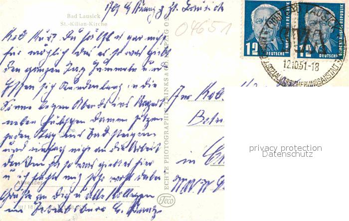 72642831 alte Postkarte Bad Lausick Sankt Kilian Kirche postalisch gelaufen Erhaltung siehe scans [AndreD76] KatCode: 11110014383020