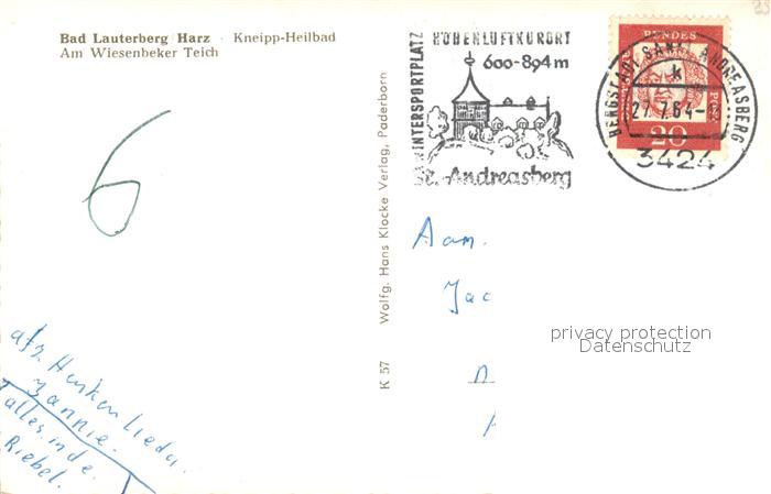 73332294 alte Postkarte Bad Lauterberg Am Wiesenbeker Teich postalisch gelaufen Erhaltung siehe scans [WerneD78] KatCode: 11110003156002