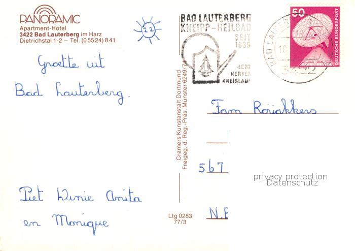 72939533 alte Postkarte Bad Lauterberg Apartment Hotel Panoramic Fliegeraufnahme postalisch gelaufen Erhaltung siehe scans [WerneD78] KatCode: 11110003156002