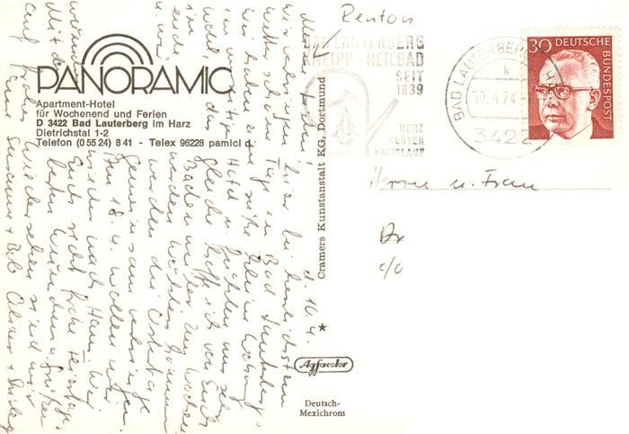 73946665 alte Postkarte Bad Lauterberg Apartment-Hotel Panoramic postalisch gelaufen Erhaltung siehe scans [FriedD77] KatCode: 11110003156002
